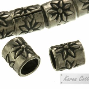 Karen Hill Tribe Silver Flower Printed Tube Bead : E23-013