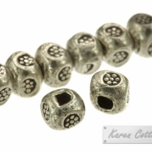 Karen Hill Tribe Silver Bullet Printed Cube Spacer : E11-014