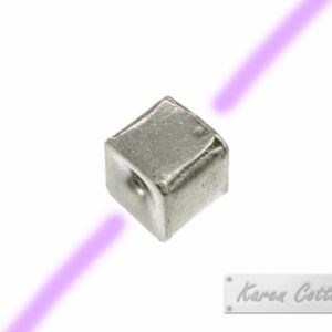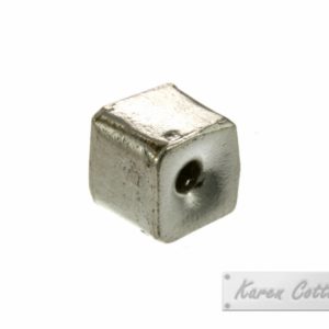 Karen Hill Tribe Silver Plain Cube Bead : B32-113